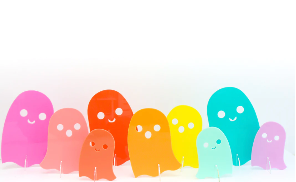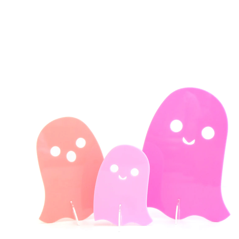 Bright colorful acrylic Halloween Ghost. Set includes 3 acrylic ghost in large medium and small sizes. Three different colorway sets available. Collect them all to build the Rainbow.