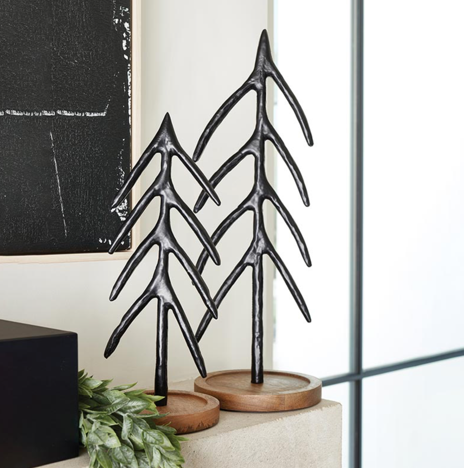 A modern vibe inspired by the great outdoors for the holiday season. Our metal tree making it easy to create a cozy winter scene. Sturdy metal bases feature a simple and inspirational tree design.