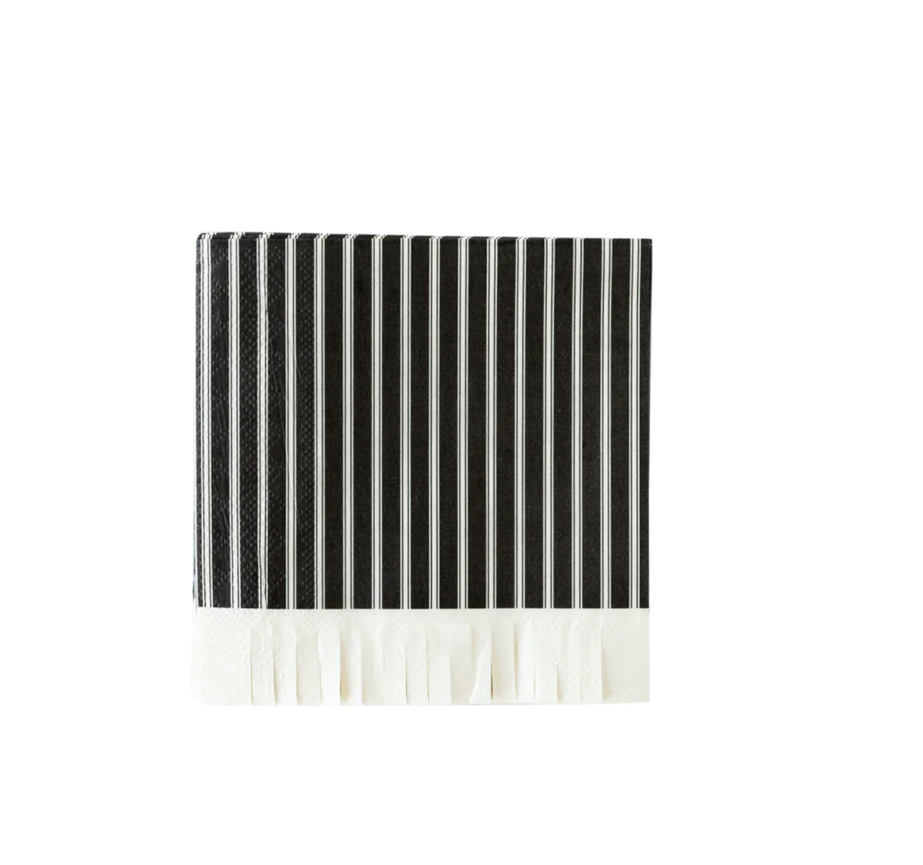 Make sure that your table isn't bare this Halloween with these fa-boo-lous cocktail napkins. With a cream and white ticking stripe and a festive fringe edging these party napkins are simple enough to accent any spooky themed party while making spell-binding statement.