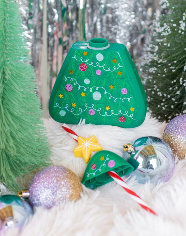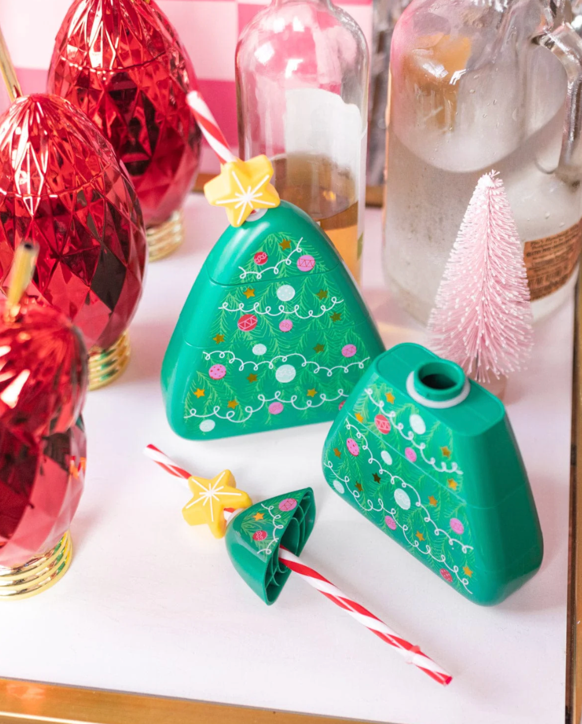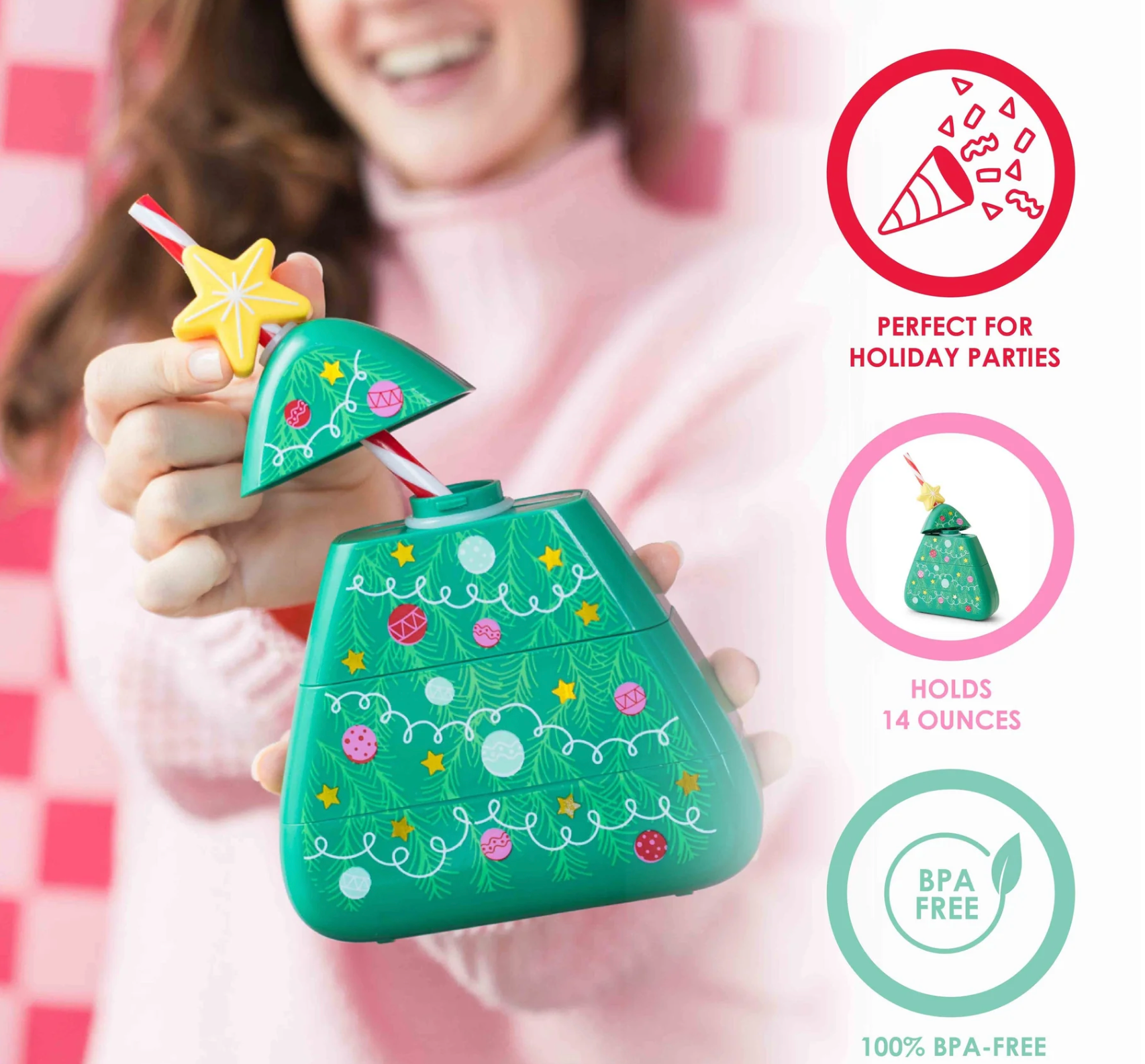 -Patented Christmas tree sipper with red stripe straw & star straw attachment