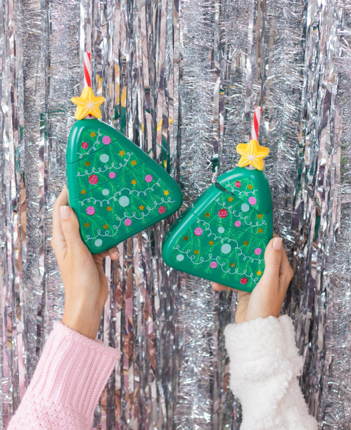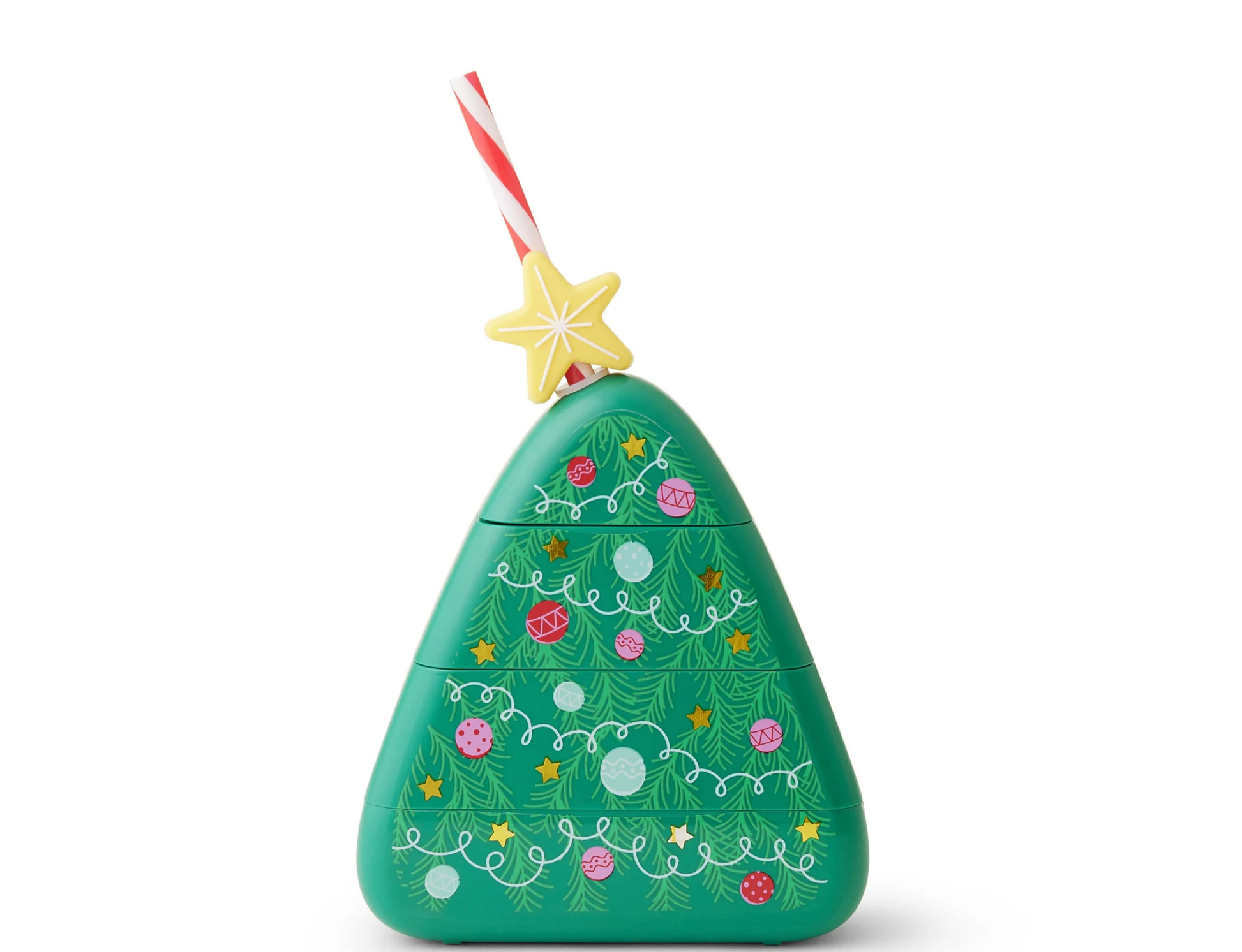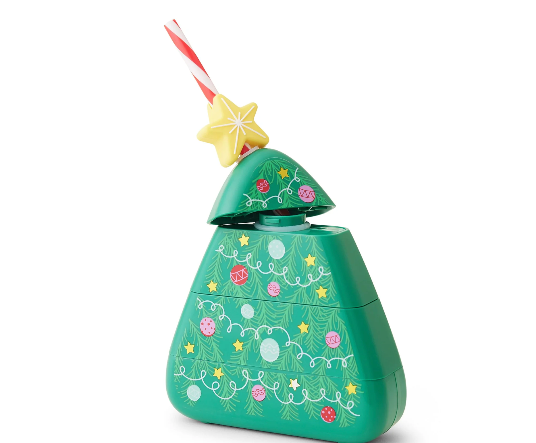 -Patented Christmas tree sipper with red stripe straw & star straw attachment