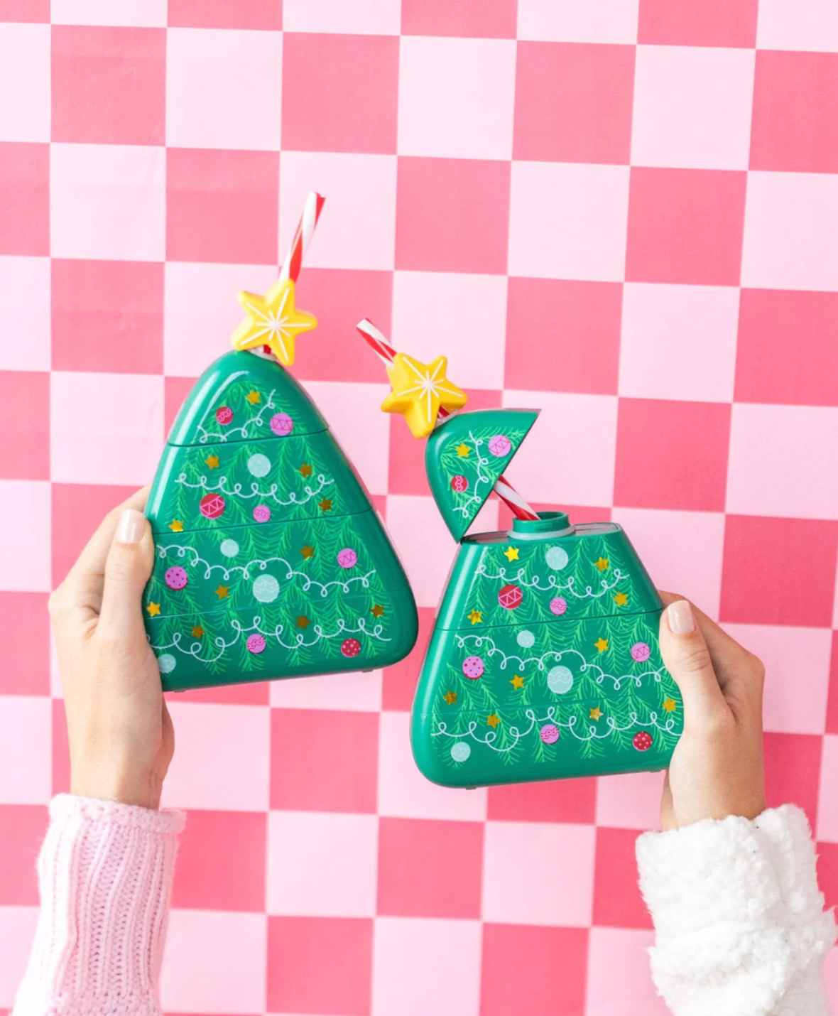 Ready, set, deck the halls! This Christmas tree novelty sipper is the perfect holiday party accessory or gift for the ultimate fun-haver this holiday season! Featuring a red striped straw, a gold star, and foil details too makes sure you sip and sparkle, Santa's watchin' Party Girl.