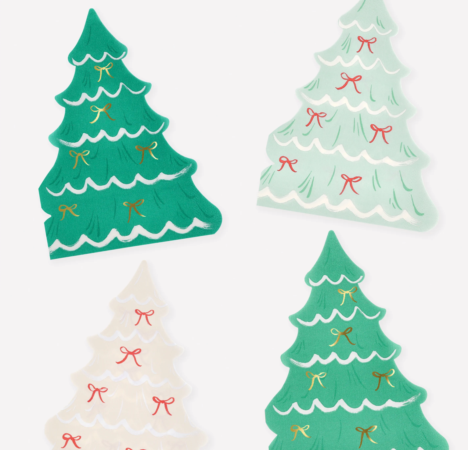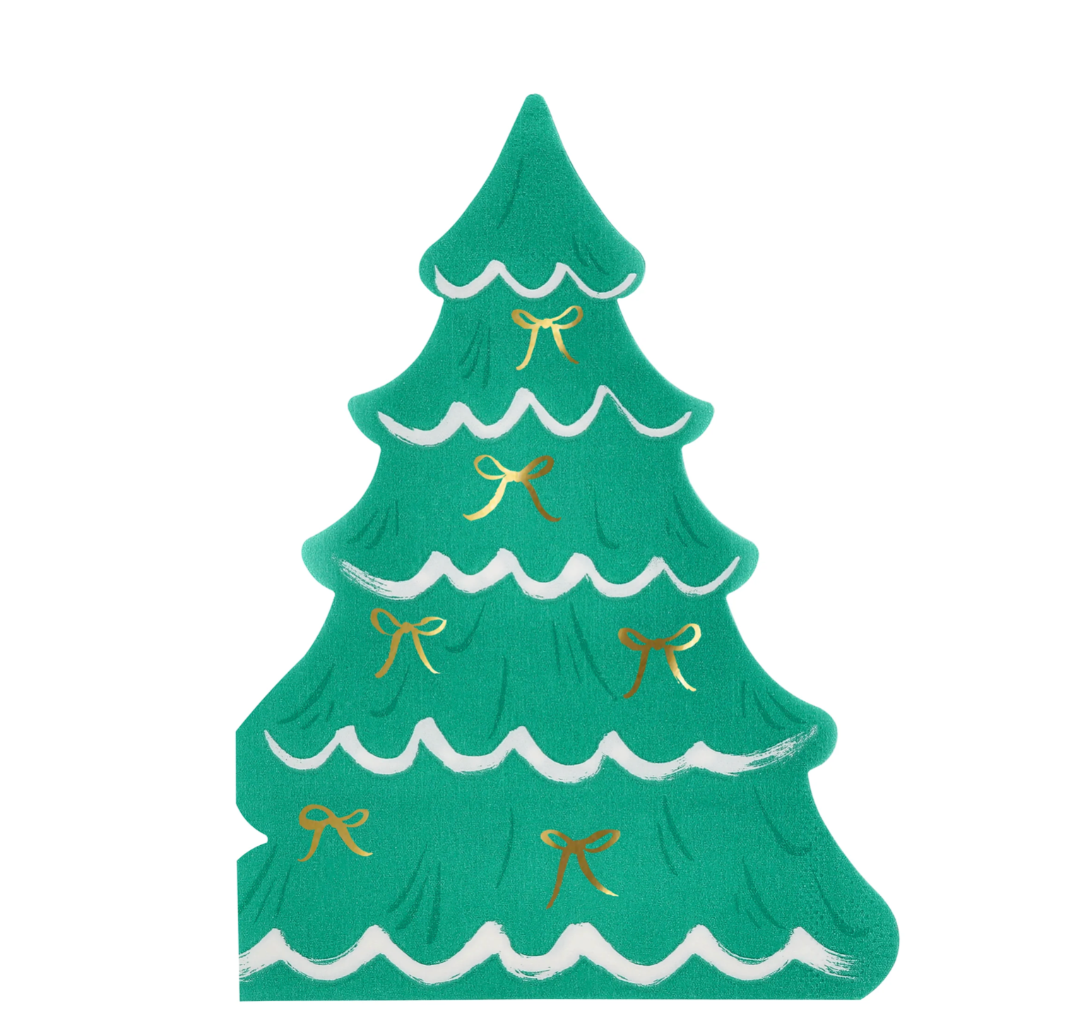 Fa, la, la! These Christmas tree paper napkins will definitely make you feel jolly. This traditional design, with a contemporary twist of chic bows and shiny gold foil shimmers, will add color and style to your party table. Perfect for family gatherings, Christmas dinner or cocktail parties. Pair them with complementary tableware for an effortlessly festive tablescape.