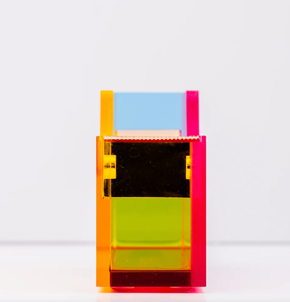 It was about time we made a tape dispenser—and not just any tape dispenser! This has an acrylic body and cool color-block design.
