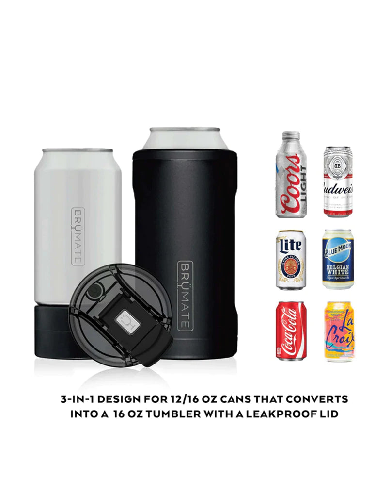 Hate warm beer? We do too. That's why BrüMate created the Hopsulator TRíO, the most versatile can-cooler in the world. It fits all your favorite 16oz craft cans, comes with a freezable adapter for 12oz cans, and with one quick switch turns into a 16oz pint glass.