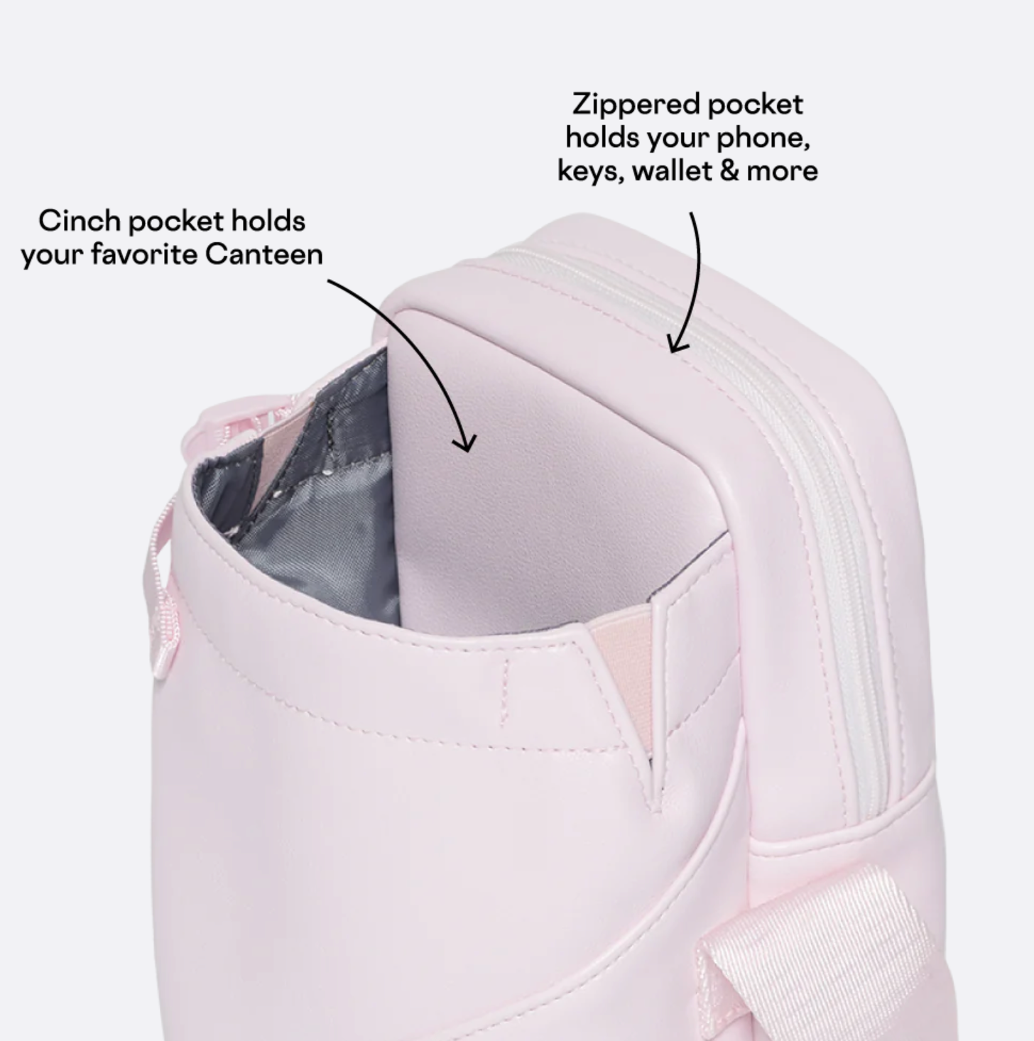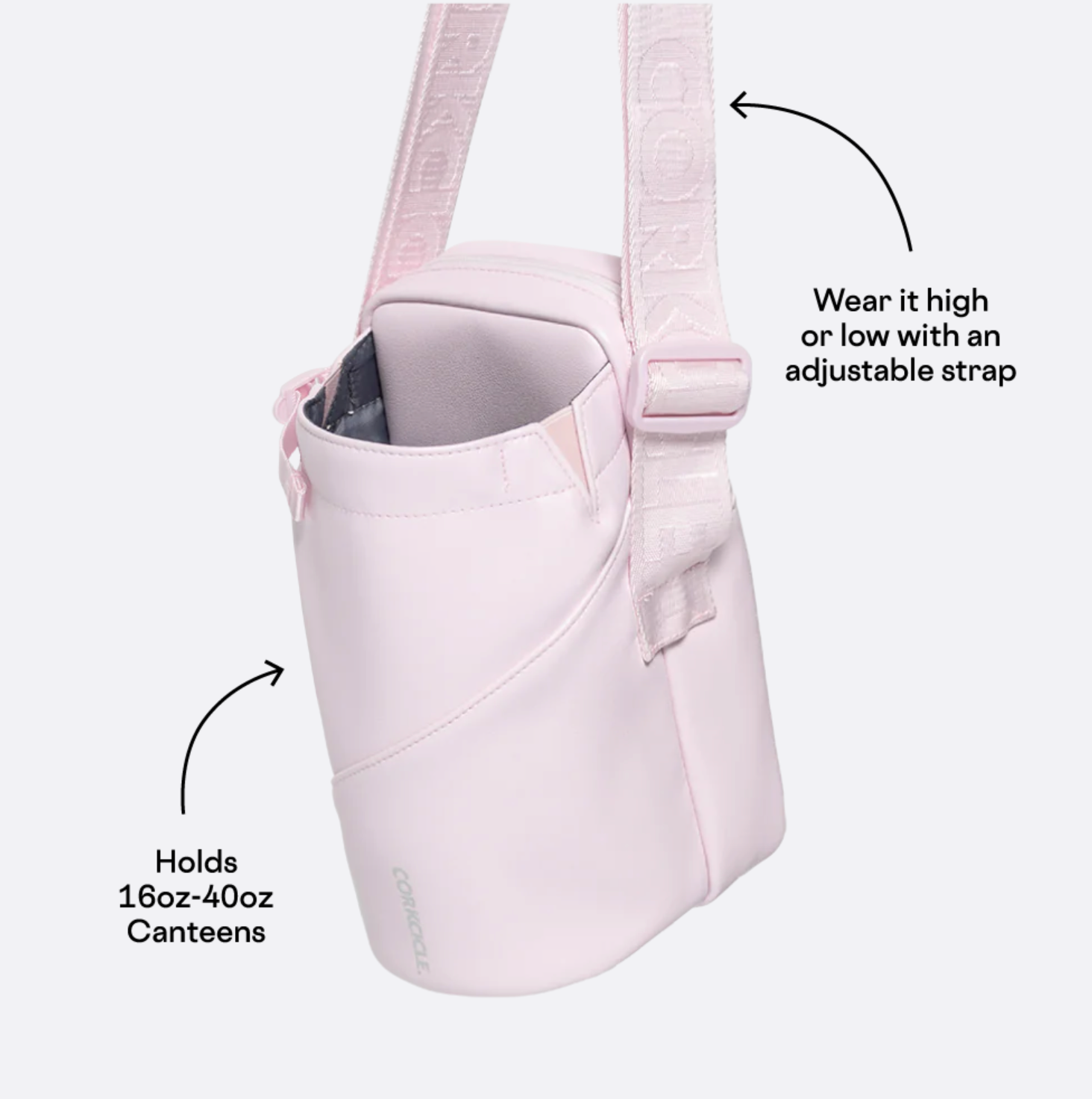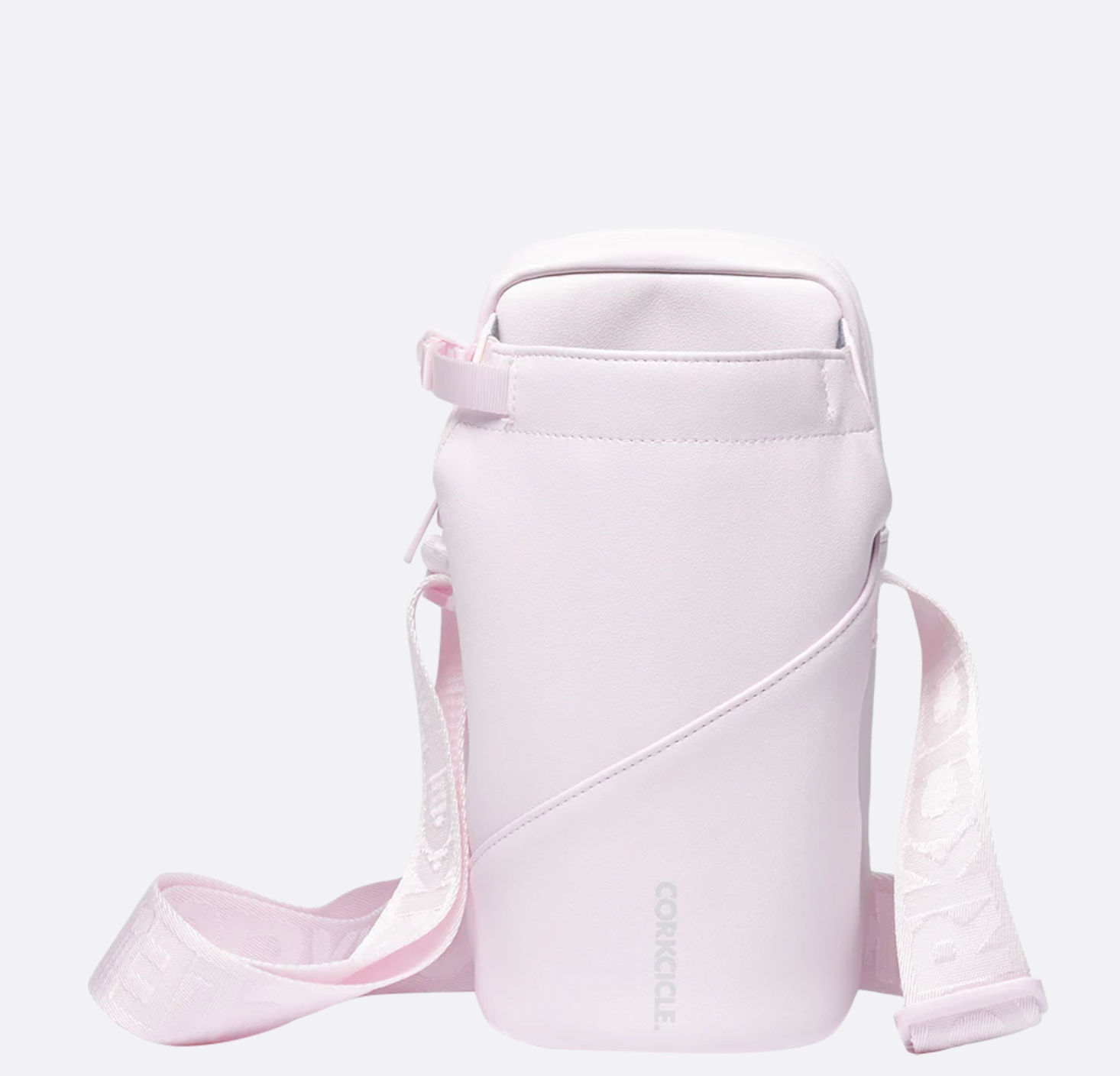 clean new look. Keep your pockets light, hands-free, and style on point with Corkcicle water bottle sling — the sleekest solution to tote your necessities in style. Our small crossbody sling bag securely holds your everyday essentials like your favorite 20oz or 32oz Corkcicle Canteen, cash, cards, and keys. The sport sling bag is big enough for your basics and small enough to snag and go. Our Sling is great for toting to your next workout, practice, or hike and keeps things cool while you work hard.