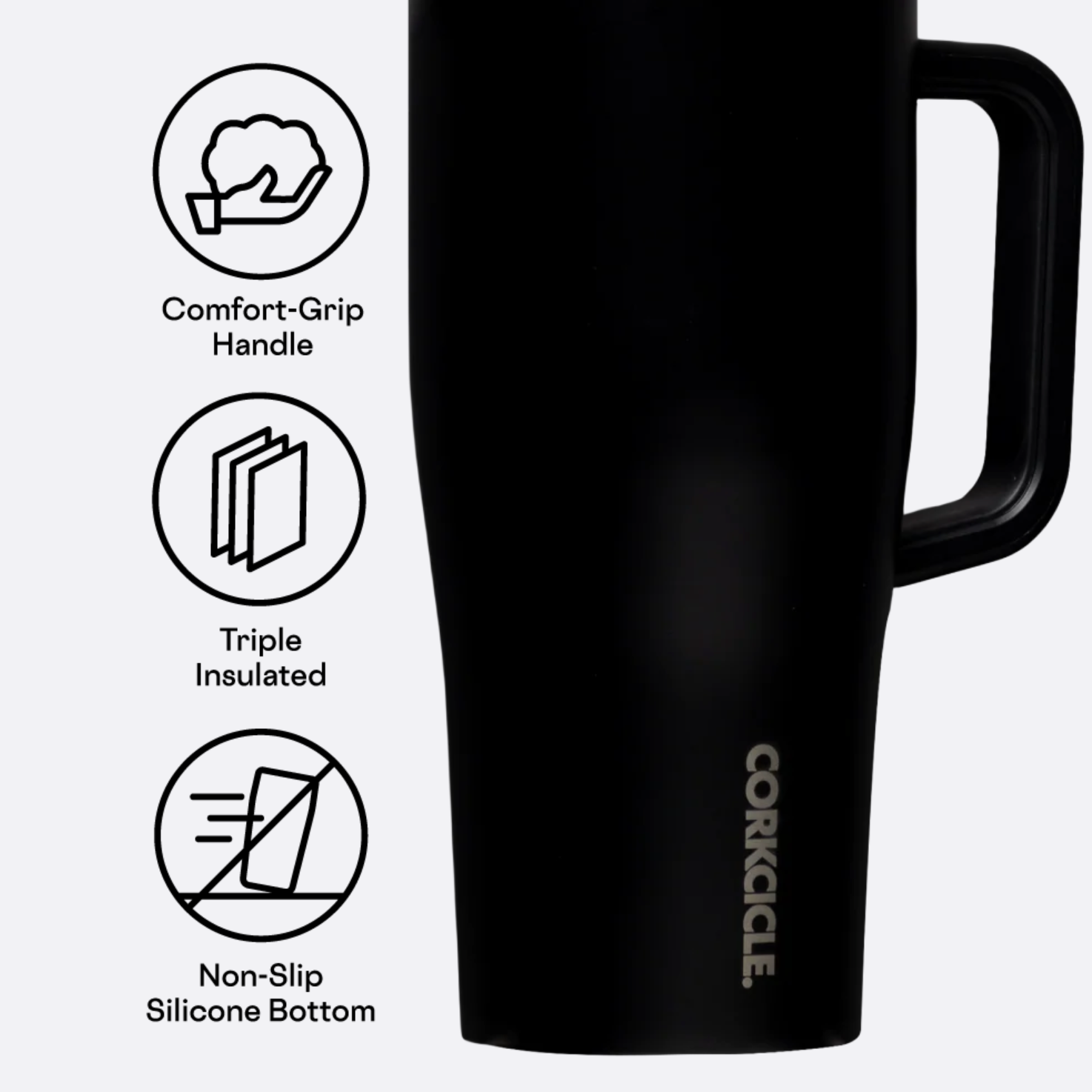 Upgraded with a tougher-than-ever finish, these monochromatic beauties will handle your most extreme adventures and resist chips, dings, and peeling. 100% LEAKPROOF with a simple twist of the lid, leakproof Cruiser is designed to keep up with the pace of your daily hustle. So go ahead and toss it in your work bag with your laptop—not a drop will escape. The leakproof Cruiser keeps your iced coffee, smoothie, or seltzer cold for 20 hours. Featuring a soft silicone straw, comfort grip handle, and non-slip silicone base, it has all the features that make Corkcicle stand out above the others. Plus, it fits in most cupholders so it’s always along for the ride. The lid separates easily to clean, and it’s dishwasher safe.