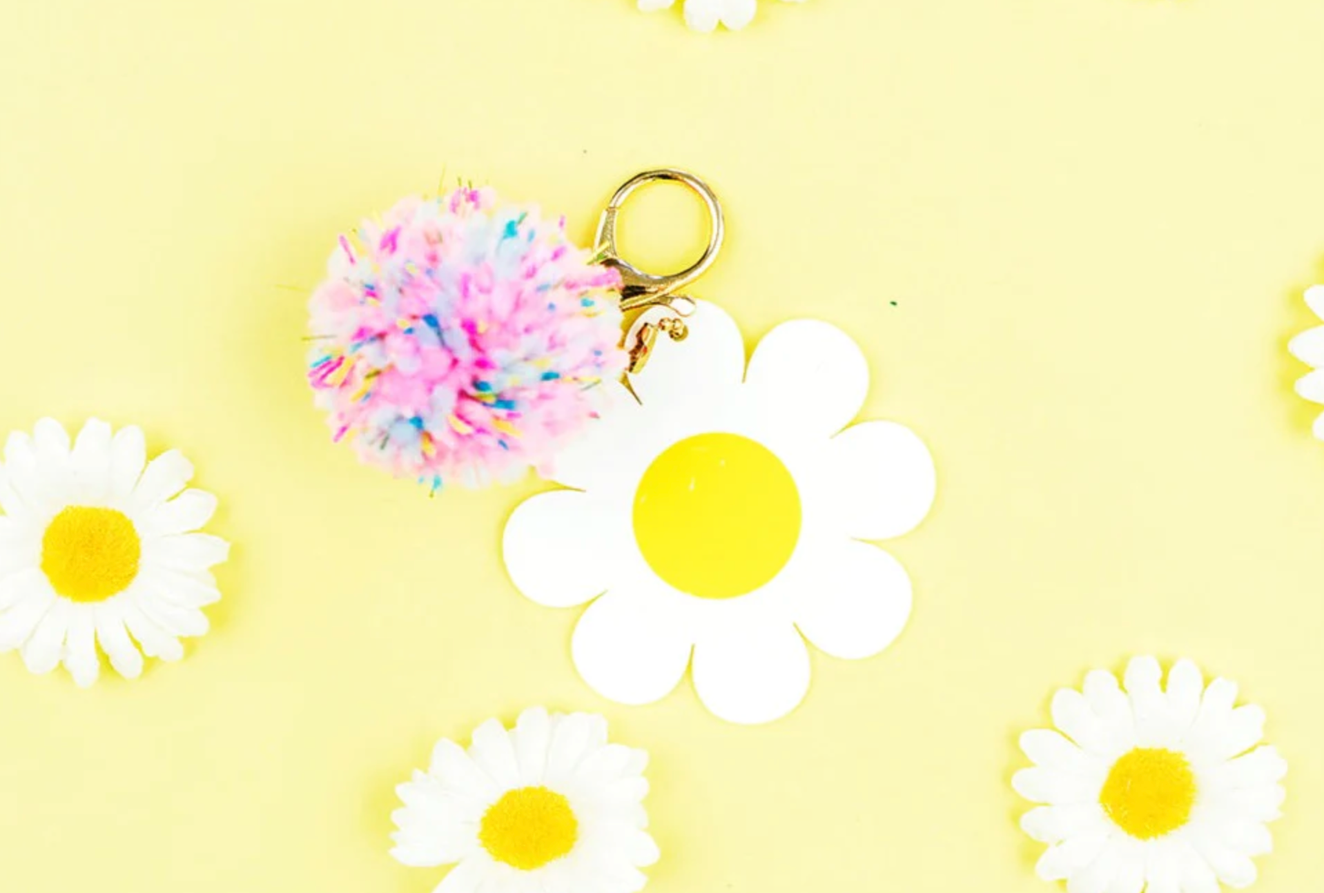 Is there anything more happy than a daisy? We didn't think so. Add our oversized daisy keychain to your tote, backpack, or keychain!