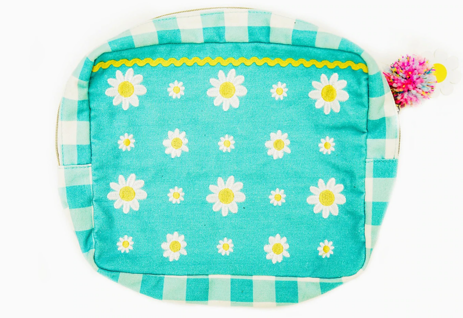 Our new daisy pouch size is great to stay organized. Whether inside your tote, for travel, or to store all your baby essentials. This is a great monogram item!