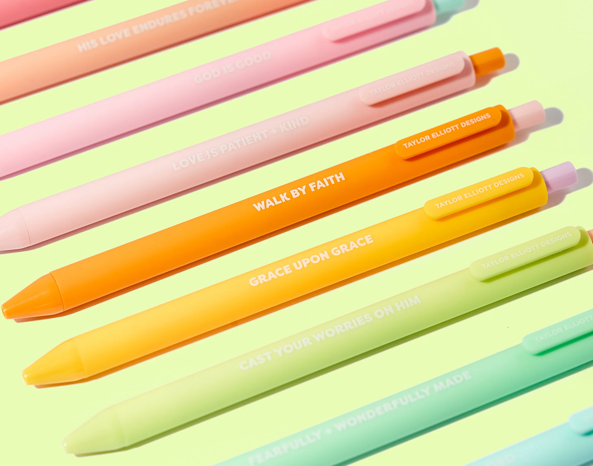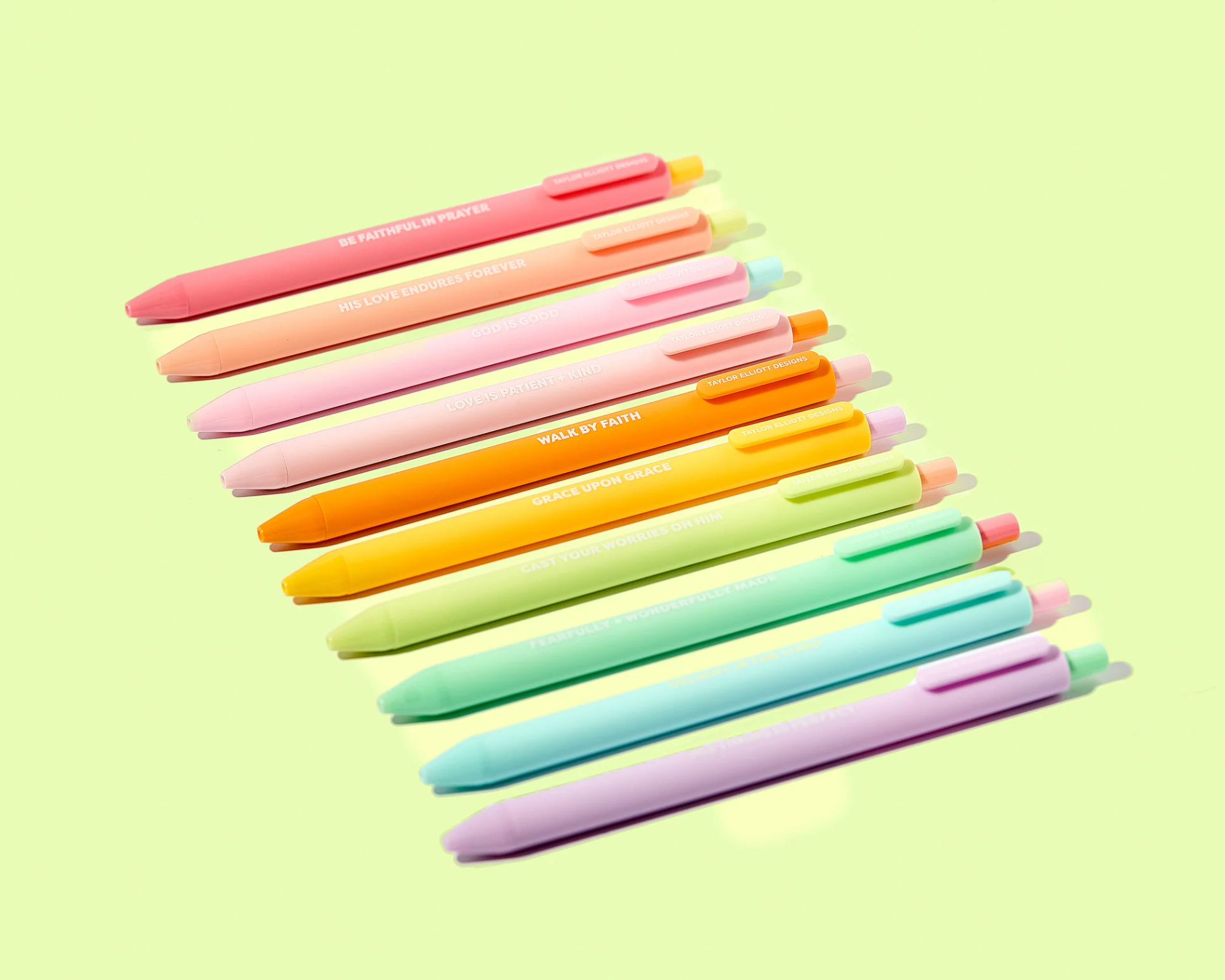 Brighten notes and prayers with the Faith Set of 10 Colored Gel Pens! Each pen features vibrant gel ink that adds a playful pop of color to writing. Perfect for journaling, Bible study, or spreading positivity, this set makes faith-filled creativity fun and colorful. These are great paired with any of our faith-based notebooks and notepads!