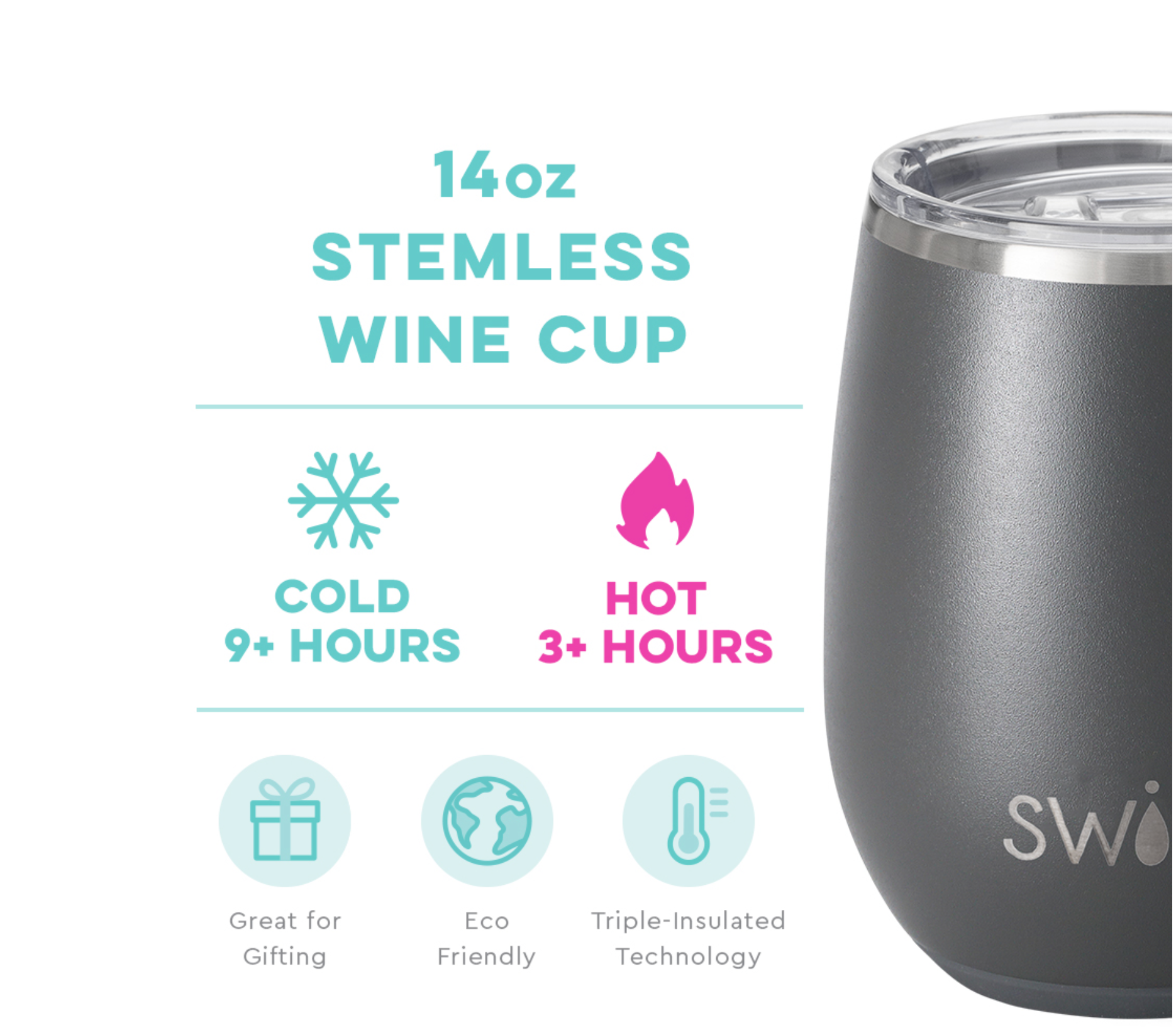 Our 14oz Stemless Wine Cups are perfect for enjoying chilled wine or cocktails by the pool, hot tea in the morning or even ice cream sundaes before bed (Swig calories don't count😉)!