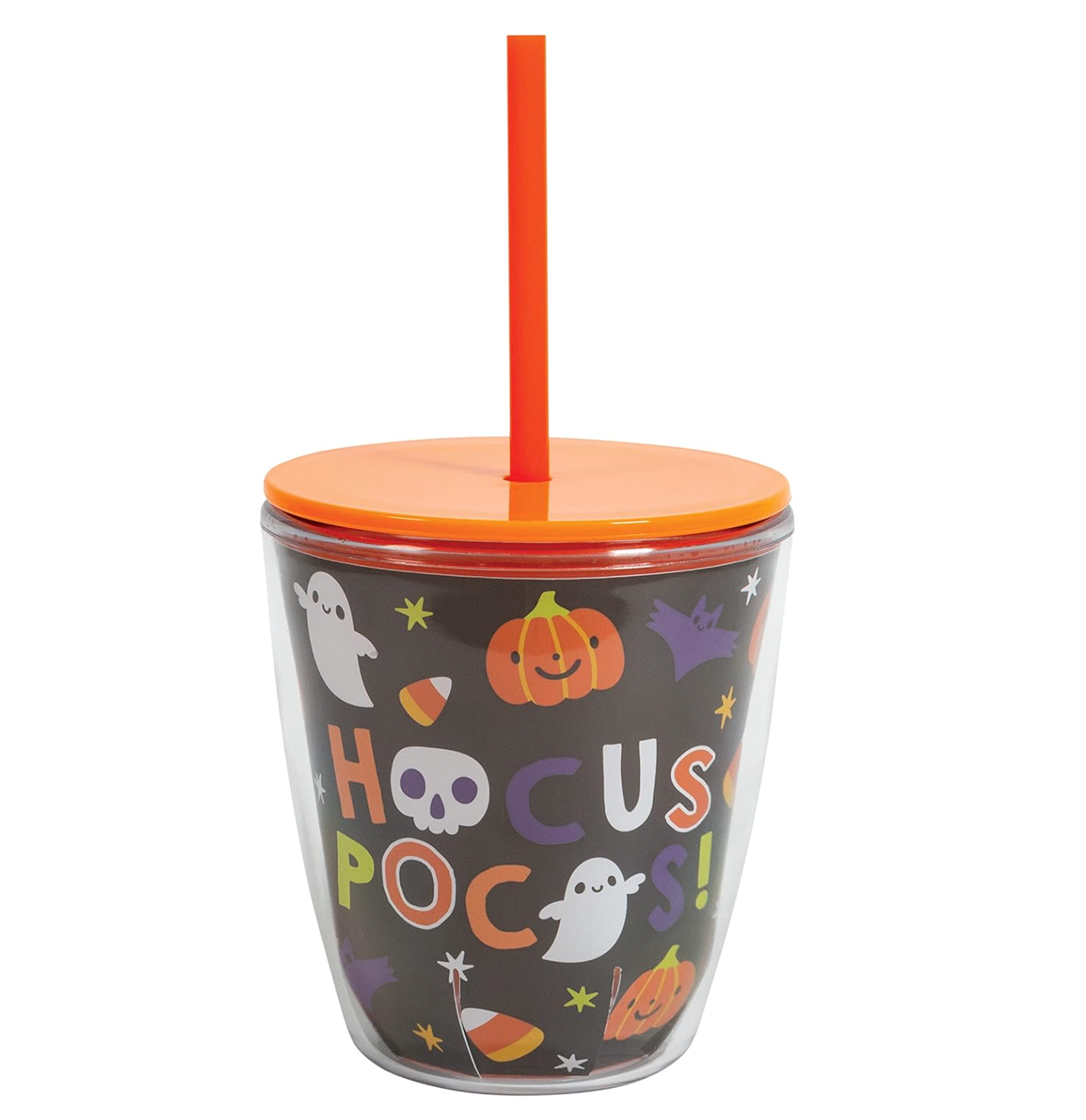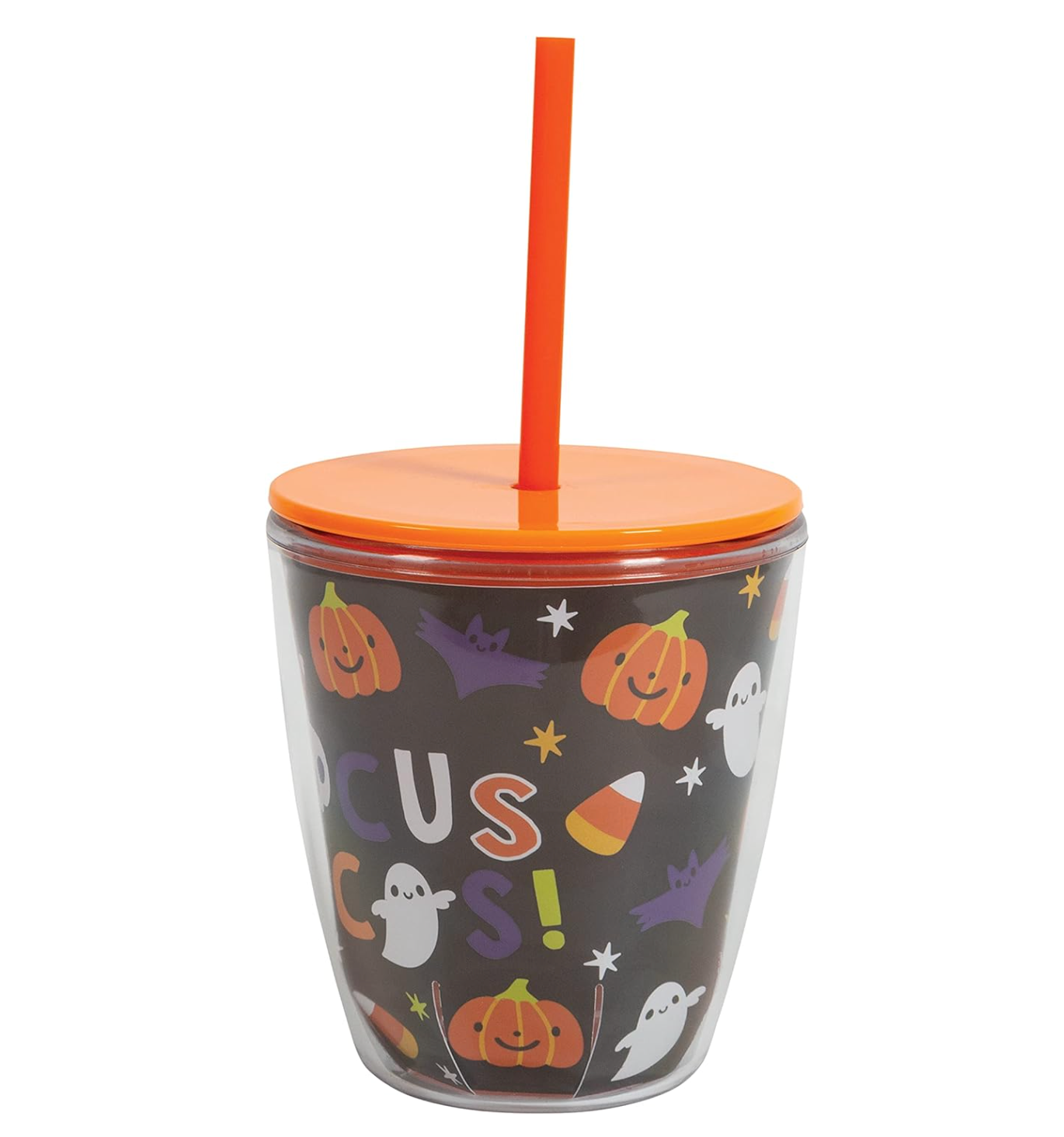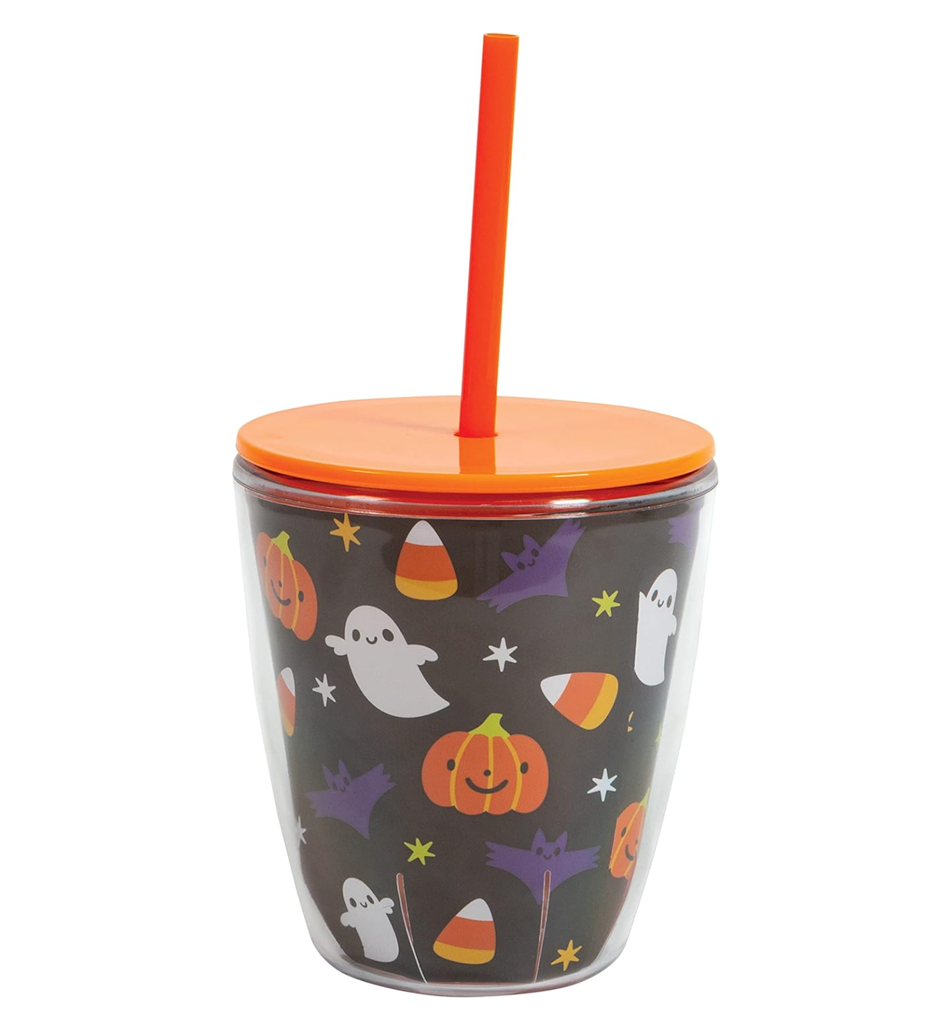 Halloween tumbler with straw. Double wall tumbler with lid and coordinating straw.