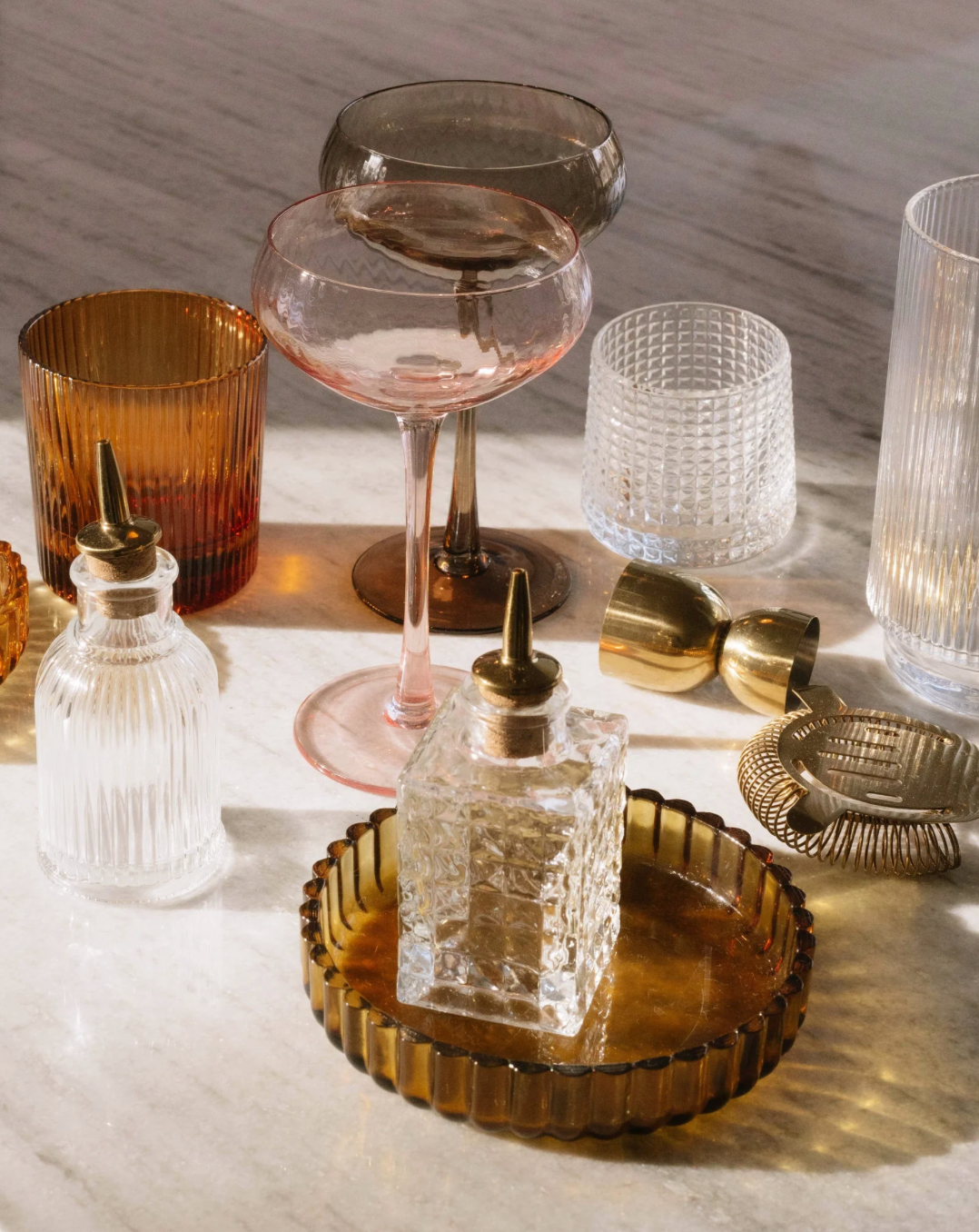 Spice up the mood of your home bar with these colored glass essentials for good times all around.