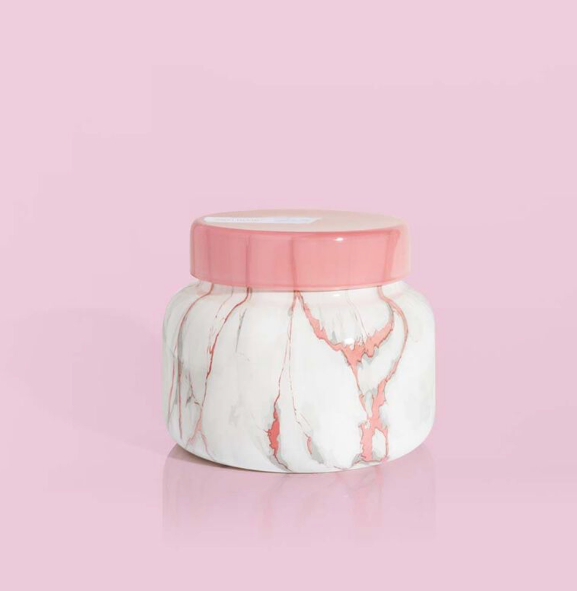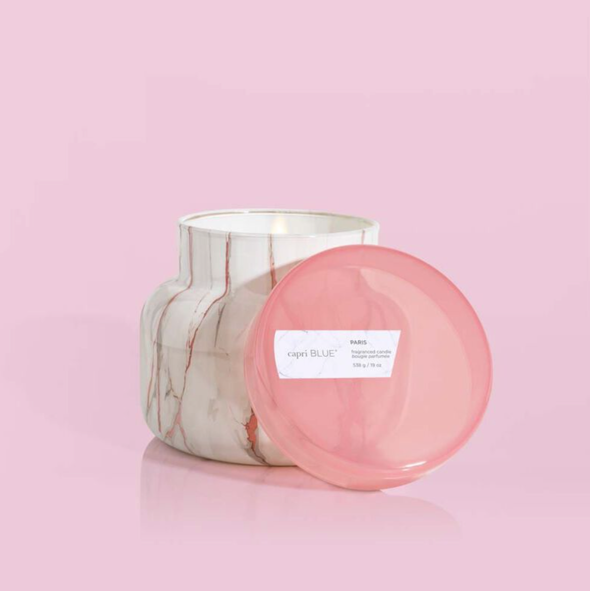 Say hello to your home's new focal point! This Modern Marble signature jar features an eye-catching design paired with our vibrant Paris fragrance. Finished with a pop of chic pink, this candle will complement any room.