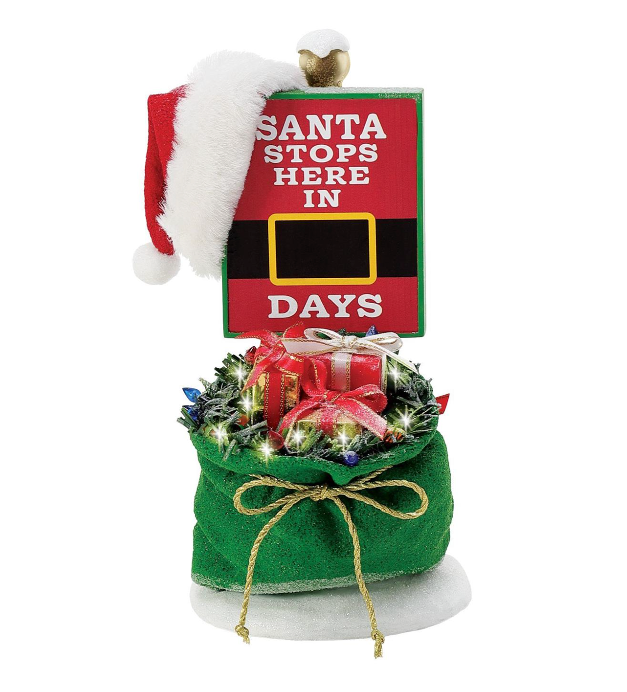 Count down the days to Santa's arrival with this Possible Dreams Santa bag accessory. Lit bag comes with chalk pen.