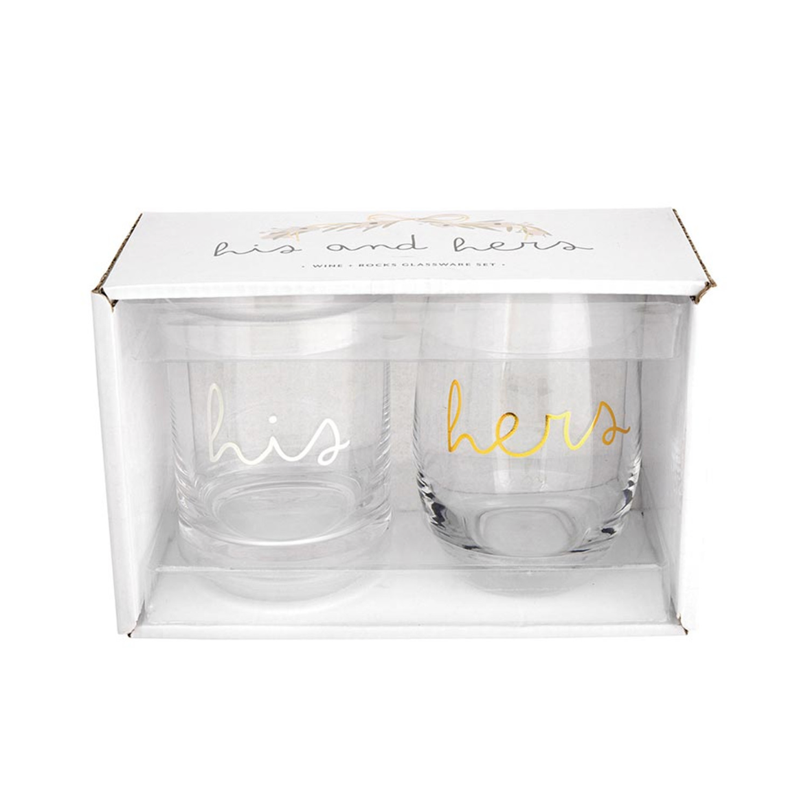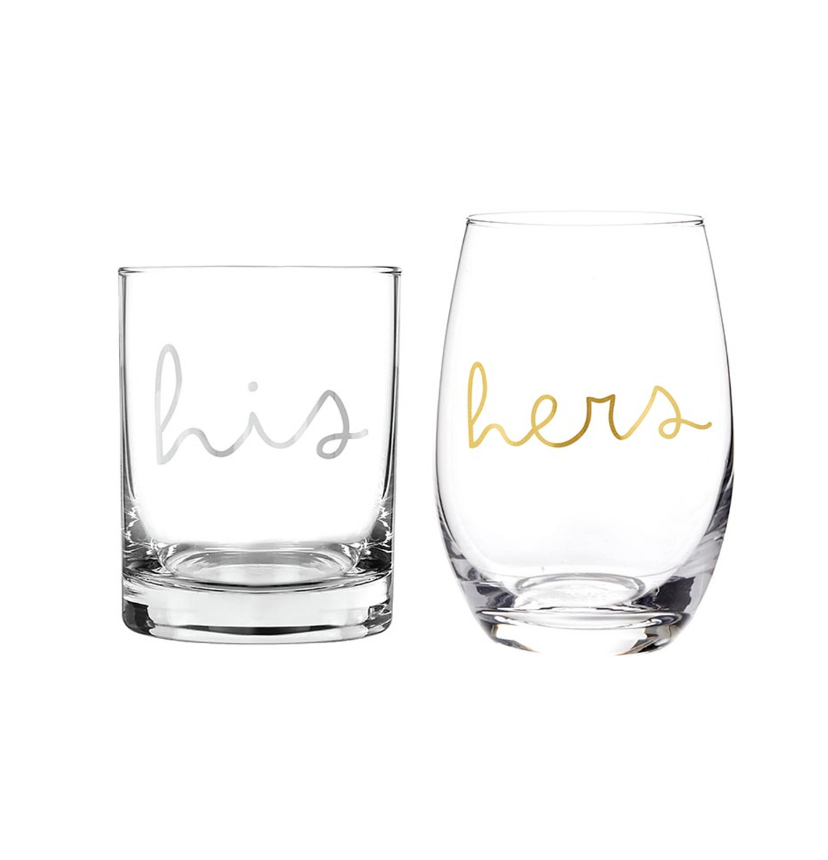 - Double Old Fashioned Rocks Glass reads "His" in silver foil