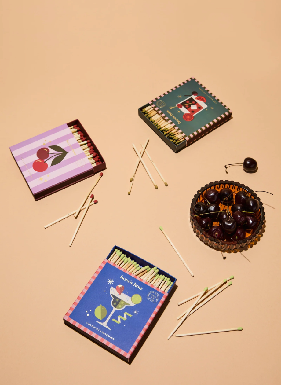 SPARK UP YOUR GATHERING AND SET THE TONE WITH THESE STYLISH BOX MATCHES THAT ARE AS FABULOUS AS YOUR COCKTAILS.
