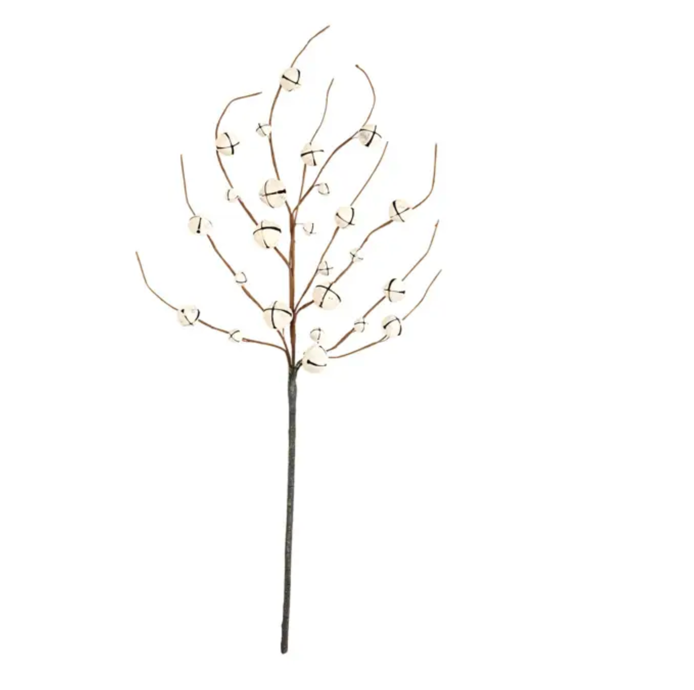 Discover a delightful addition to your decor with our White Bell Vine Stem. This charming stem showcases white jingle bells resting gracefully on a faux bois stem, exuding an inviting warmth to any space. Embrace the rustic charm of the distressed finish and unique markings adorning the bells, adding character to your surroundings. Crafted from sturdy metal, this 24" stem guarantees long-lasting beauty and versatility. Whether elegantly displayed on tablescapes or nestled in your cherished Christmas vase, this white bell vine stem is sure to captivate hearts and evoke a cozy festive ambiance.